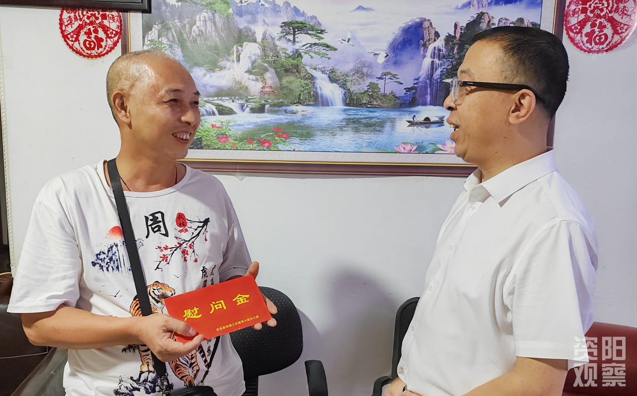 军民鱼水情,情深意更浓。据了解,“八一”前夕,安岳县双拥办、安岳县退役军人事务局干部职工分成10个慰问小组,对46个乡镇(街道)的1至4级伤残军人、抗战老兵、“三属”和部分困难退役军人、现役军人家属进行了走访慰问,为他们送上慰问金,送上党和政府的关心关怀。徐智林 全媒体记者 李思彤