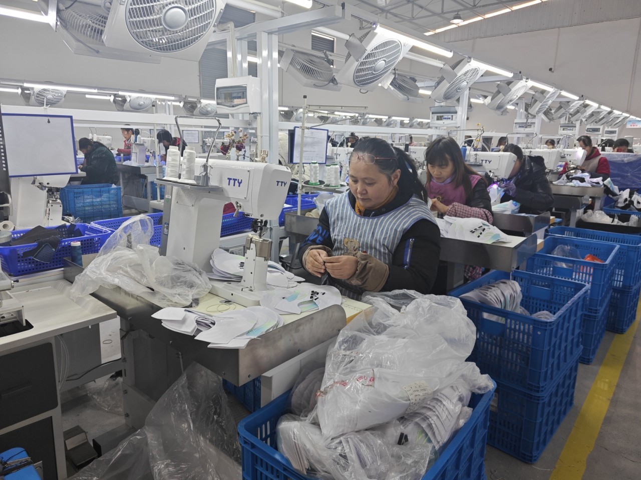 太和村经济鞋面厂忙碌的生产线。周倩 摄