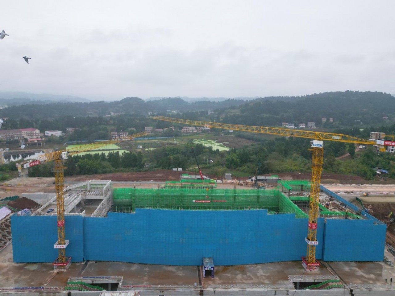 成渝中线高铁安岳站顺利完成主体混凝土结构封顶。赵彩萍 摄