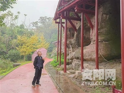 卧佛院守护人吴忠富正在巡查。安岳石窟研究院供图