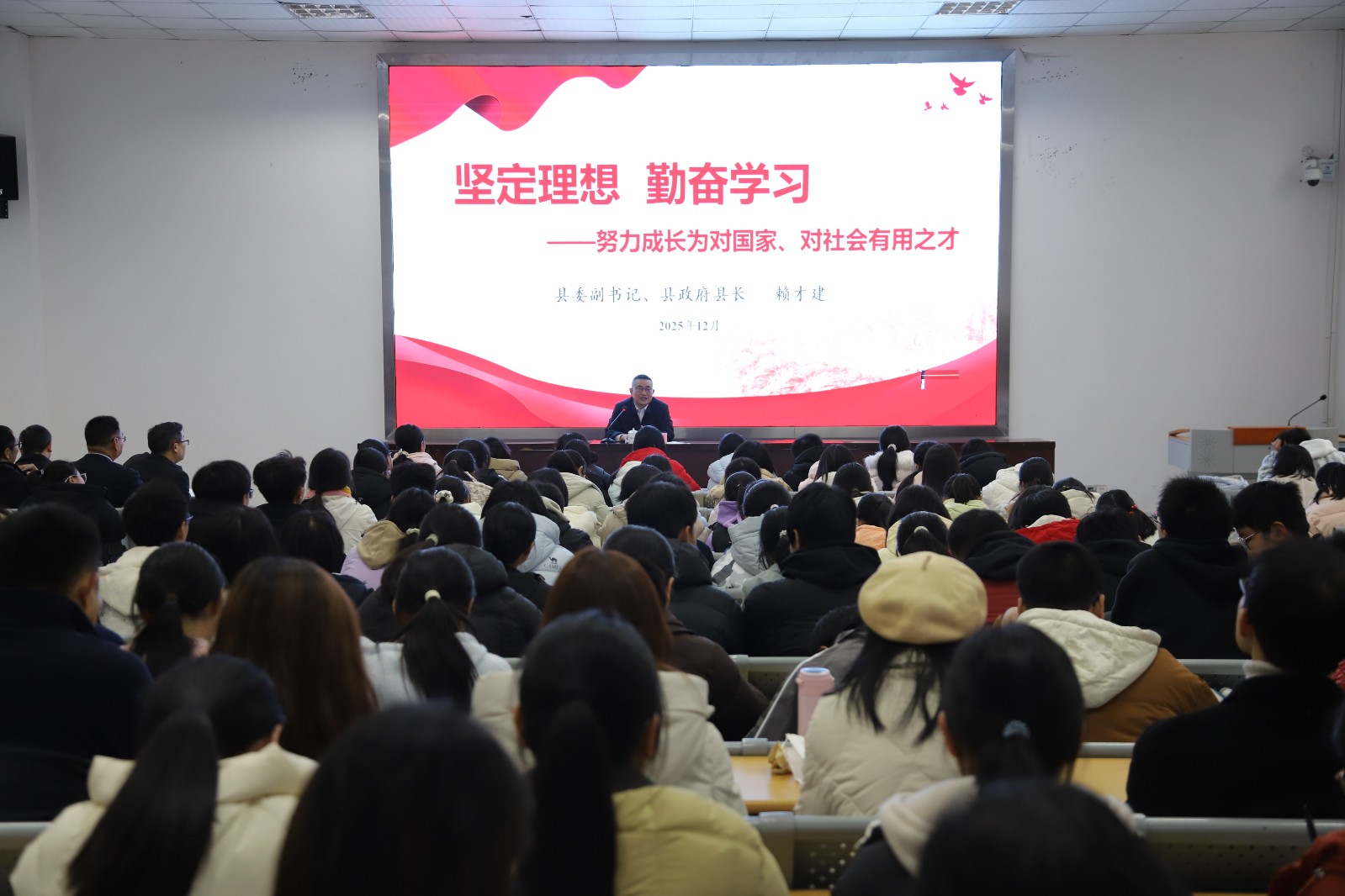 12月24日,县委副书记、县政府县长赖才建走进安岳中学(方林校区),以“坚定理想 勤奋学习——努力成长为对国家、对社会有用之才”为主题,为学校师生讲授专题思政课。