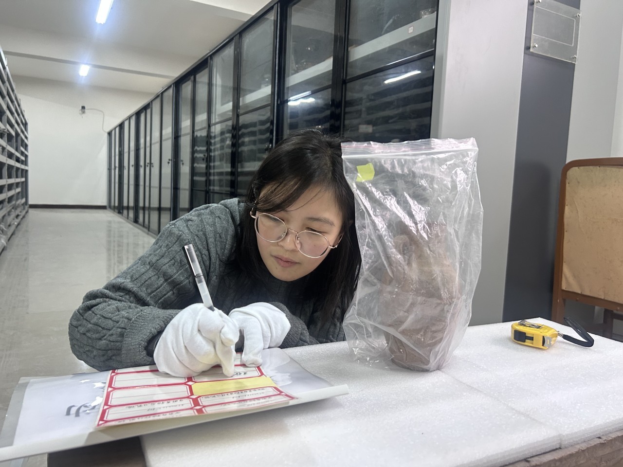 李永勤正在进行文物整理工作。受访者供图