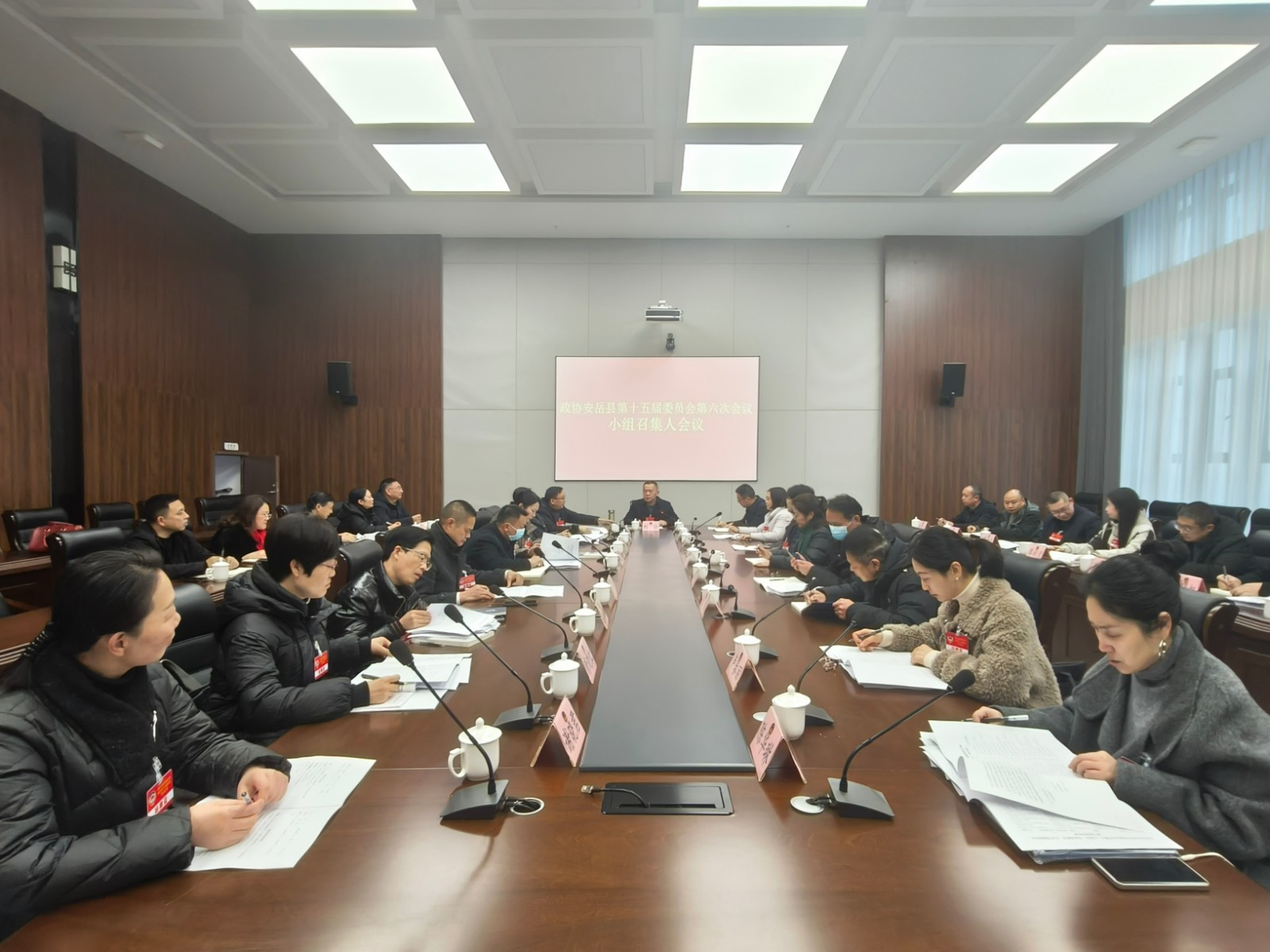1月25日下午,政协安岳县第十五届委员会第六次会议召开小组召集人会议,通报会议筹备、会议主要活动安排等相关情况,落实小组召集人职责,明确会议纪律。县政协主席刘云出席会议并讲话。县政协副主席吴辉主持会议。