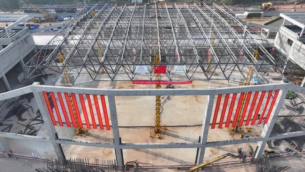 成渝中线高铁安岳站屋盖钢网架精准顶升就位