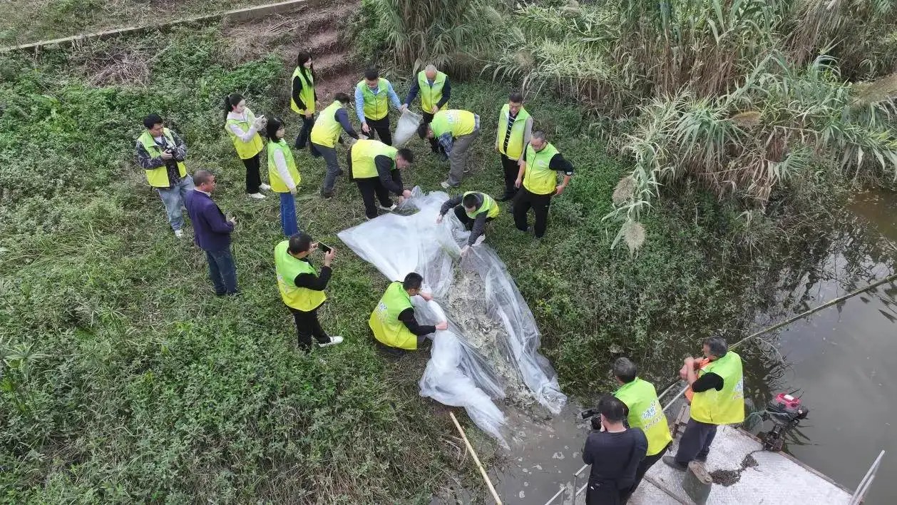 实践活动环节,志愿者们全情投入,积极参与。在龙台镇滨河路区域,志愿者们分组开展生态环境保护宣传,向群众发放宣传资料,普及水资源保护知识;现场设置的有奖知识竞答环节吸引了不少群众参与,进一步提升了公众对水环境保护和志愿服务理念的认知。专业技术人员现场采集水样,使用便携式设备进行水质快速检测并公布结果,增强了活动的科学性和公众信任度。随后,志愿者们还参与了水生生物资源增殖放流活动,科学投放鱼苗,助力恢复河道生态平衡。河道巡查环节采用岸巡、船巡与无人机巡相结合的水陆空协同模式,全面排查河道环境,清理沿岸垃圾,以实际行动守护母亲河的清澈与美丽。