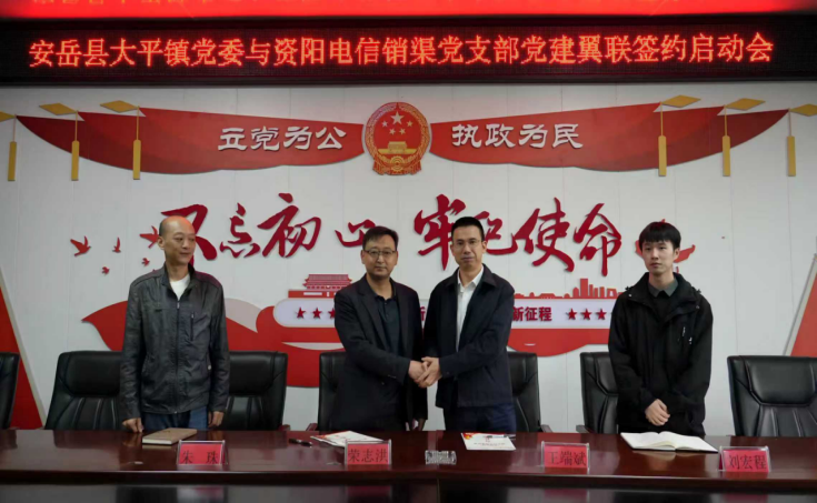 近日,大平镇党委与资阳电信销渠党支部举行“党建翼联”签约仪式。一张薄薄的签约纸,承载着政企携手共促发展的坚定决心,也开启了党建引领、资源共享的崭新篇章。