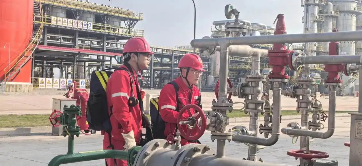 智能化并未完全替代人工。在设备区,作业人员仍每日定期开展红外测温、超声波检测等巡检工作,结合智能运维平台推送的预警信息,实施“预防性维护+状态检修”。“日常巡检中,我们主要通过检测设备温度、压力、运行噪音以及压力表是否正常等方面来判断设备运行状况。”现场检修人员介绍。这种“人机协同”模式使设备故障停机率下降超过40%,有效保障了装置的持续稳定运行。