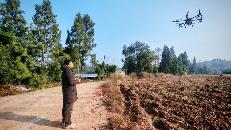 空中,无人机沿预设航线实施精准飞播;地面,工作人员操作背负式播种机进行局部补种……在清泉村,刘凡强采用的“空中+地面”协同作业模式,正是安岳县以现代农业科技赋能产业发展的生动缩影。