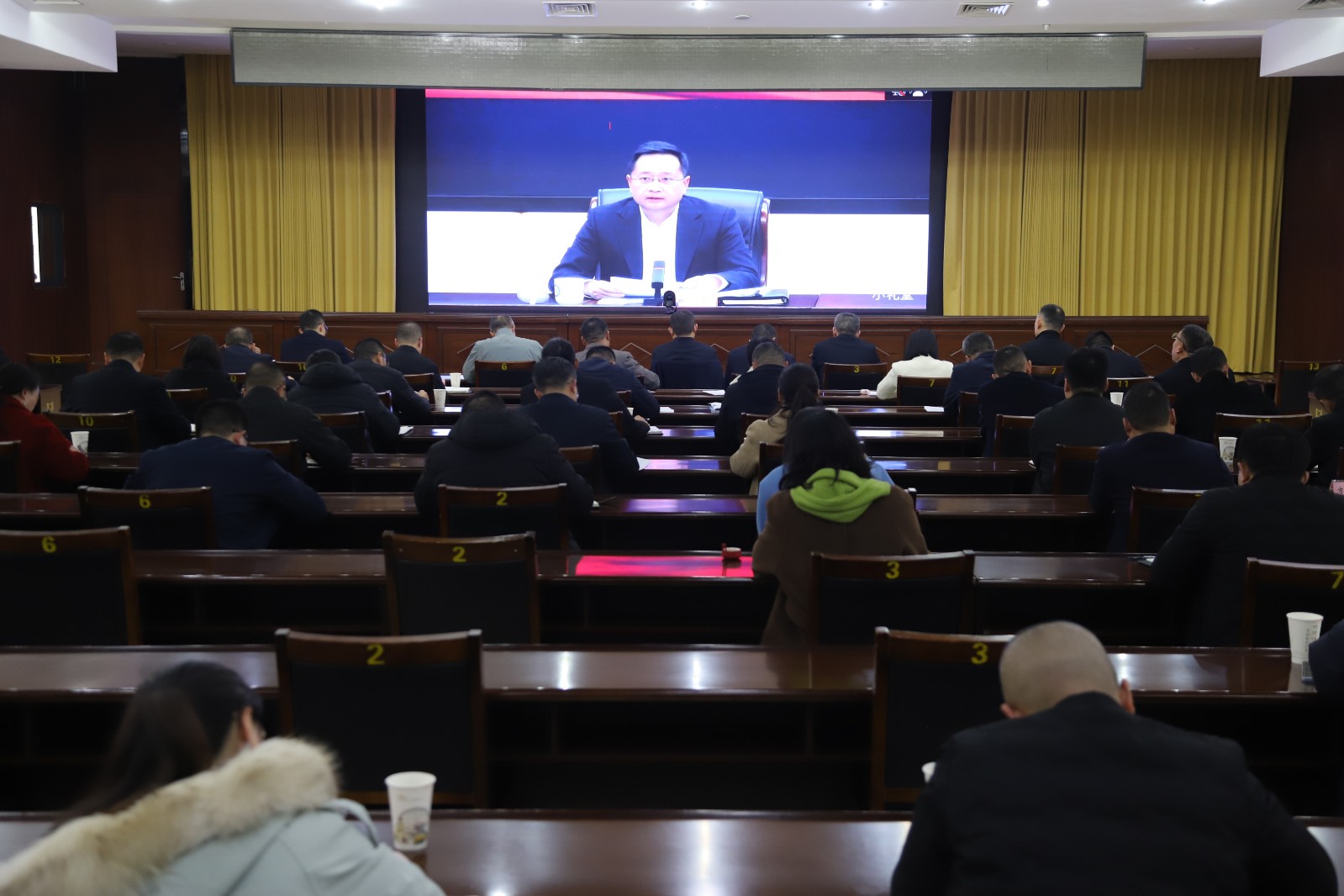 全体在家县领导在安岳分会场收听收看会议。(贺云 王强)