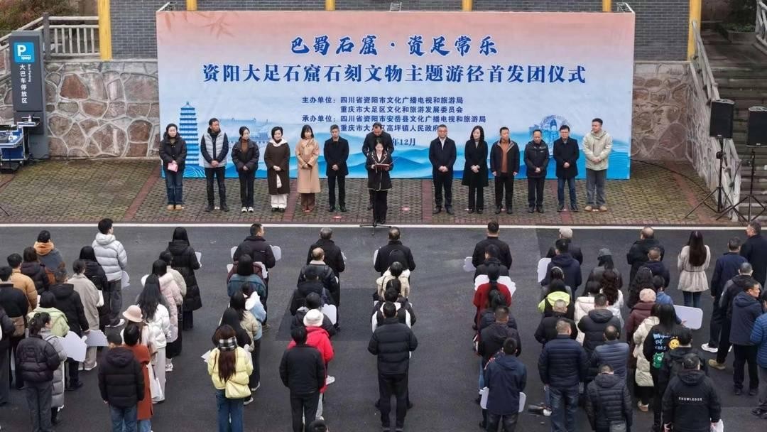 近日,“巴蜀石窟·资足常乐”资阳大足石窟石刻文物主题游径首发团仪式在重庆市大足区高坪镇巴蜀雅楠景区举行。