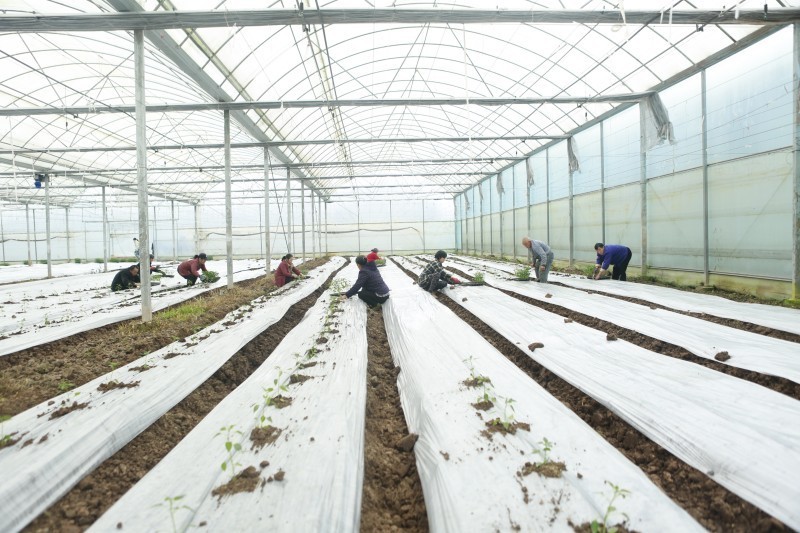 近日,四川资阳安岳县乾龙镇的蔬菜示范基地内一派繁忙景象。十余名村民正在整齐划一的温室大棚中移栽辣椒幼苗,现场井然有序、干劲十足。