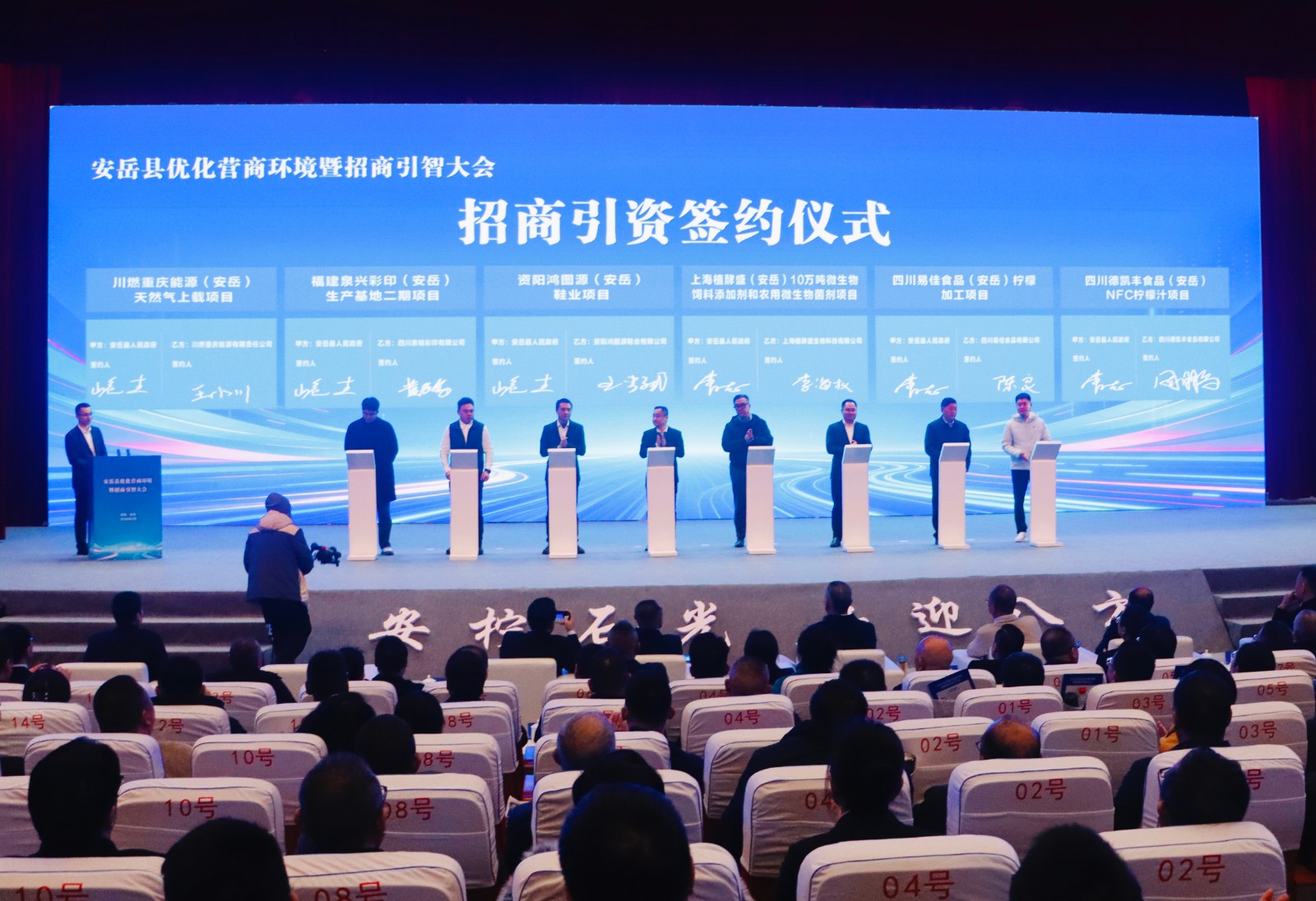 会上,为9名获评“星级人才”的优秀企业家和技术骨干颁发证书,以礼遇厚植人才发展沃土;四川大学、东方演艺集团、西南大学柑桔研究所分别与安岳县人民政府、盛安集团、安岳县柠檬科学技术研究所签署战略合作协议,将在多领域开展深度合作,为安岳产业发展注入创新活力;川燃重庆能源(安岳)天然气上载项目、上海植酵盛(安岳)生物酵素项目等六个重点项目集中签约,涵盖能源、特色产业等领域,为安岳经济高质量发展培育新的增长点。